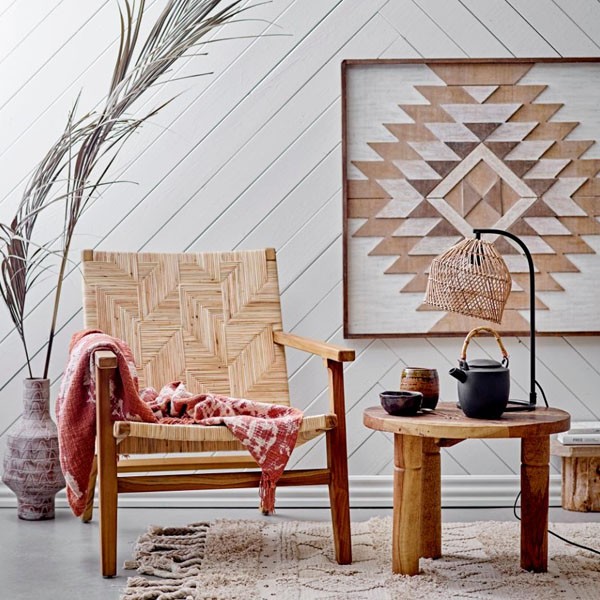 The Mills recliner from the Creative Collection is an iconic piece with an organic look that will stand out in the room. It has a very exclusive teak look with the rattan seat and backrest in a beautiful pattern. It is both beautiful and practical, and pleasantly comfortable. It will be perfect in a contemporary interior.