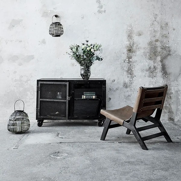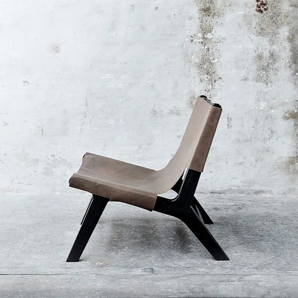 The lounge chair is made with a solid black wooden base and the combination with the warm and rustic buffalo leather gives the chair a contrasting and exciting look.