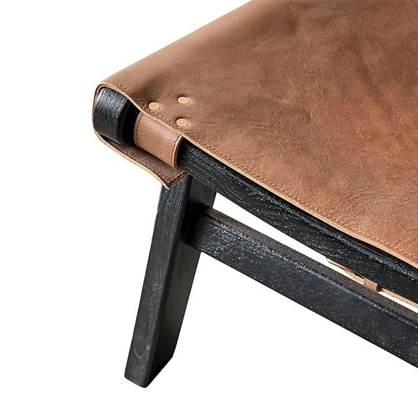Philosophy is made with beautiful, high quality leather and attached to the frame with beautiful detailing that makes the lounger interesting to look at, even when standing with its back to you.