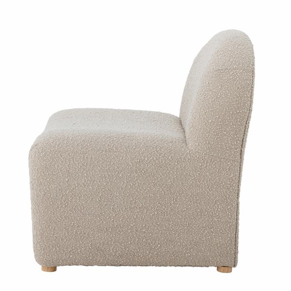 The Neel Lounge Chair by Bloomingville is a modern and elegant armchair, with a sculptural silhouette that brings a touch of sophistication to any interior. Upholstered in a soft bouclé fabric in a warm off-white shade, it offers comfort and an invitation to relax. Its rounded shapes and spacious seat ensure a comfortable seat, ideal for relaxing in the living room or in a cozy corner. Its clean design and soft lines make it an aesthetic and timeless centerpiece.
