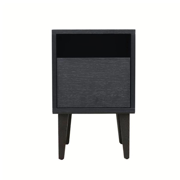 KLEE is a practical bedside table with small dimensions. Functional, this small black bedside table has an opening with a door and a storage niche.