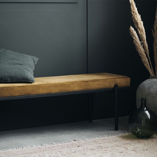 This bench House Doctor colored steel black and its seat covered with velvet mustard color will bring class and elegance to your room. Whether we are talking about its perfect lines or its finishes, it is undoubtedly a piece of quality furniture that will fit perfectly into your interior. In a living room, at the foot of your bed or in a hallway, this velvet bench offers you endless possibilities to transform your House in a bond that exudes style and warmth.