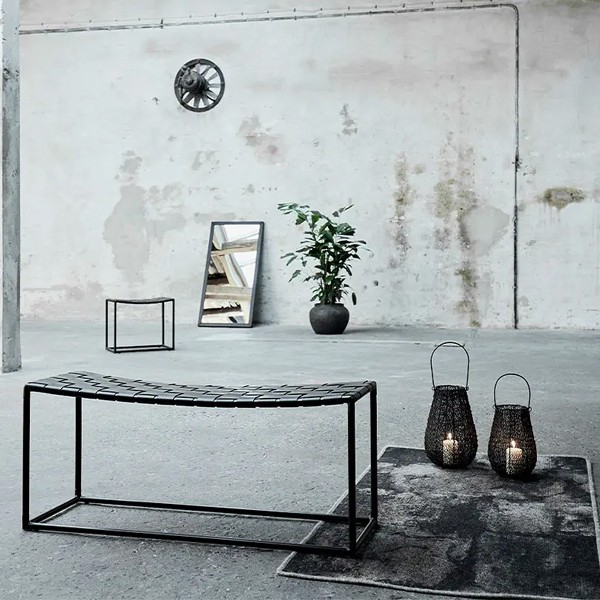 The Soho series from Muubs is an industrial and urban interior series that combines aesthetics and functionality. Crafted from a painted metal frame and woven black Buffalo leather seat, these stools and benches are both sturdy and stylish. Designed with a small arch over the seat to help increase height and ensure optimal comfort, these stools offer a quirky, modern design. Plus, the woven leather seat is soft and comfortable for maximum comfort . These benches can be installed in many places, such as the hallway, bedroom, living room or a teenager's room, to create an urban and trendy atmosphere.