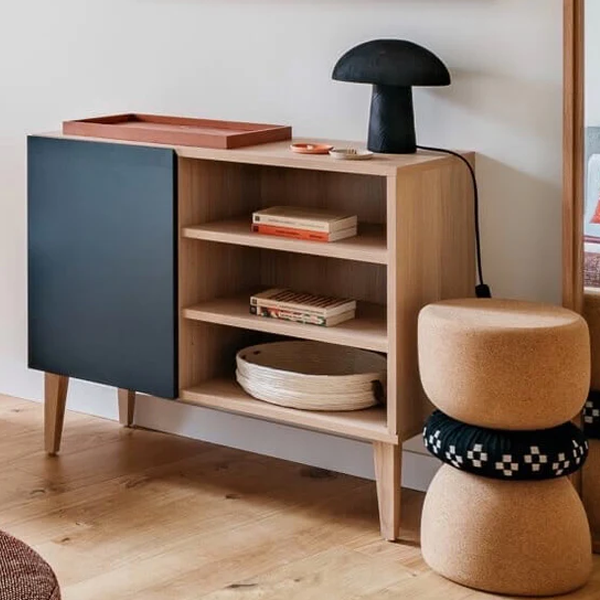 Imagine BEKY proudly enthroned in your modern living room, the anthracite gray door bringing a touch of contemporary sophistication. Organize your books and decorative objects with elegance thanks to its niches and shelves. The eco-managed solid wood legs anchor solidity and durability, making BEKY the ideal companion for your daily life. Its timeless design adapts harmoniously to your interior, and the asymmetrical door allows you to subtly play with the layout of your spaces. Take advantage of the slow closing of the door to add a touch of tranquility to your routine. BEKY thus becomes much more than a simple piece of furniture, but a key element of your modern and organized lifestyle.