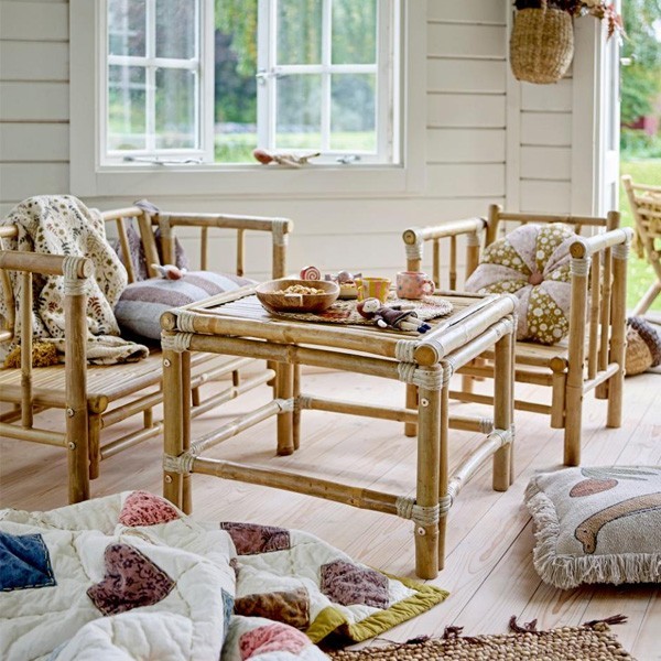 The Mini Sole folding chair with armrests from Bloomingville MINI combines practicality and aesthetics. Made of bamboo, it exudes a natural charm and folds easily for convenient storage. Perfect for indoors in a child's room or outdoors under cover, it offers a stylish and functional seat for a variety of occasions.