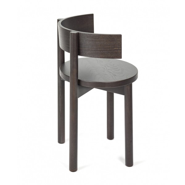 Finished with immense attention to detail , the Paulette chair from Serax harmonizes with a refined and designer interior . For Paulette, designer Marie Michielssen started with an elliptical seat, which gives the chair a very special expression. The backrest follows the curvature of the ellipse and allows several sitting positions, from the simple upright position at the table to a more lateral and relaxed pose, with one arm resting freely on the backrest. This chair has an ebony black ash finish, but also in warm ochre, deep green or ivory shades, colors inspired by nature.