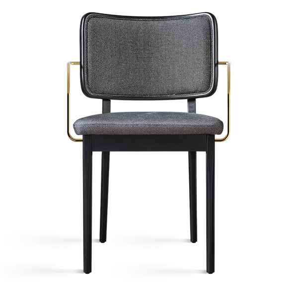 Black oak and caviar upholstered chair with armrests - Red Edition