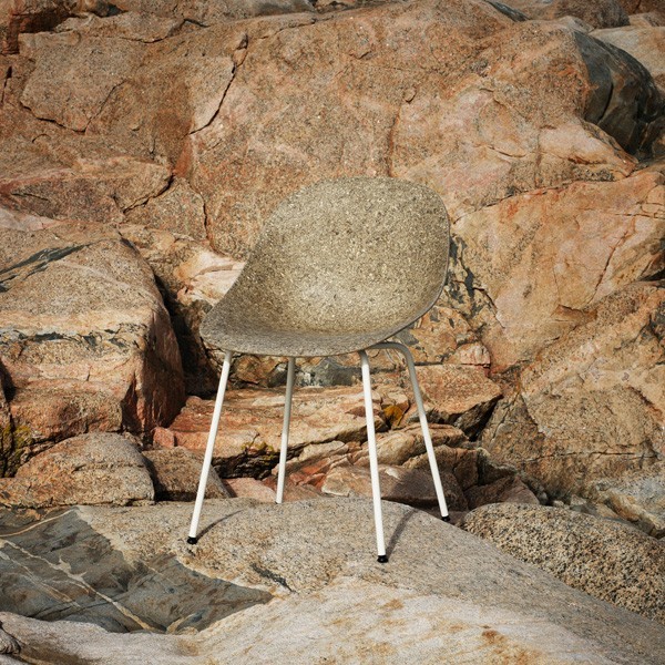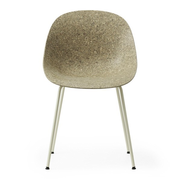 The Mat chair is made in Denmark and designed by Foersom & Hiort-Lorenzen. It consists of a hemp shell made using a unique compression process, mounted on powder-coated steel legs. The shell is made from a proprietary blend of 75% hemp fibres, while the remaining 25% is made from a specially developed and recyclable bico binder. The Seaweed variant is made from 69% hemp fibres, 6% eelgrass (seaweed) and 25% binder. At the end of their lifespan, both the shell and the base can be recycled if returned to Normann Copenhagen.