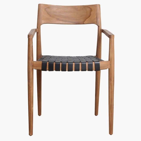 This comfortable chair features a teak wood frame, while the seat is made of leather. With its sleek Danish-inspired design, it combines elegance and comfort. Its careful design allows it to offer optimal support while bringing a contemporary touch to your interior. The chair is available in black leather and natural leather, two finishes that blend perfectly together, allowing you to create a harmonious and refined ensemble.