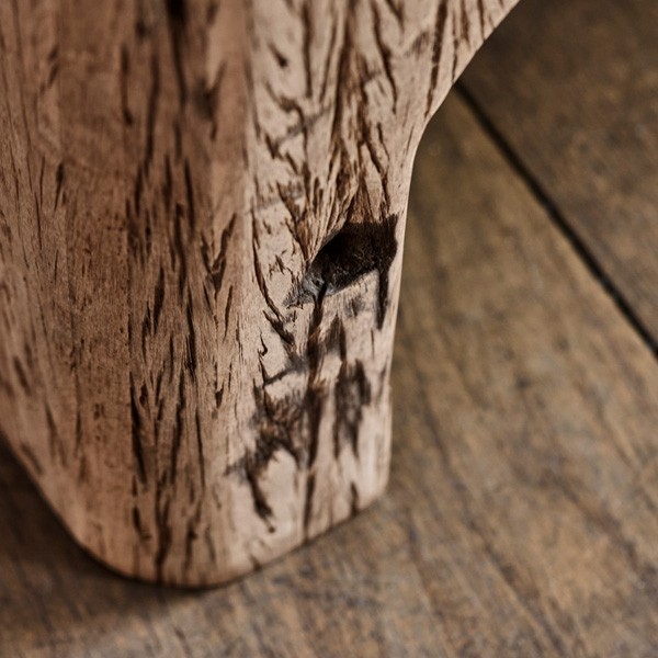 The timeless, square design of this piece of furniture, combined with its distinctive wood pattern, creates a striking visual effect. The rustic, organic texture of the wood adds a natural dimension that enriches the atmosphere of the room, creating an environment that is both modern and welcoming.