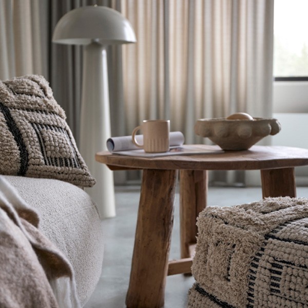 In a warm-toned living room, the FUNGI floor lamp sits elegantly next to a linen sofa, diffusing a soft, enveloping light. Its sculptural design evokes the natural shapes of mushrooms, adding an artistic and organic touch to your interior. Perfect for enhancing a reading nook, an entrance hall, or a cozy bedroom.