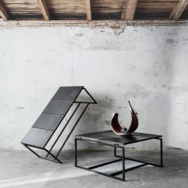 The different materials on the table create a beautiful and different look that you just want to touch. The square table fits perfectly with a set of sofas with its straight surfaces.
