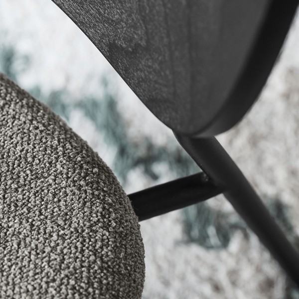 It sits there with elegance, its slender silhouette and clean lines instantly capturing your attention. You approach and drop your belongings onto the nearby coffee table. With an instinctive gesture, you settle comfortably into the chaise lounge, the soft feel of the bouclé fabric enveloping your tired body.