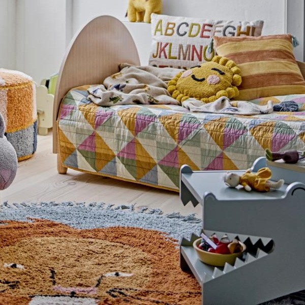 In a cheerfully decorated bedroom, the Arnie bench sits proudly at the foot of the bed. Children can sit comfortably on it to read a book or play, while their favorite stuffed animals are neatly stored inside. When evening comes, they can tidy their toys away on their own thanks to the practical openings on each side. This piece of furniture becomes an everyday companion for a tidy and cheerful bedroom.