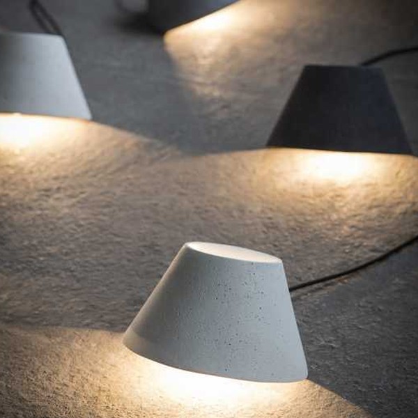 True to his game of cat and mouse, the French designer conceals the real function of the object. Placed flat on the table , a cupboard or on the floor , the Eaunophe lamp looks like a modern sculpture in solid concrete , mimicking the shape of a lampshade. But as soon as you tilt it slightly, a warm light diffuses from below.