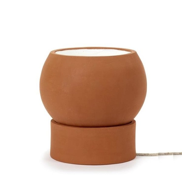 Discover the low large format table lamp from the Terra collection, a unique creation published by Serax . This elegant lamp is made up of a cylindrical base and an adjustable spherical diffuser, thus offering flexibility in its lighting. Made of natural terracotta, it has an exceptional and authentic finish, accentuated by a white varnished diffuser interior.