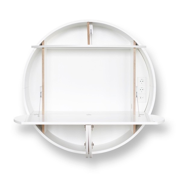 Designer Inesa Malafej presents us with an ingenious and innovative workspace with this wall-mounted secretary. This wall-mounted piece of furniture is perfect for those looking to optimize space in their interior. Its simple and refined design allows it to blend discreetly into any room.