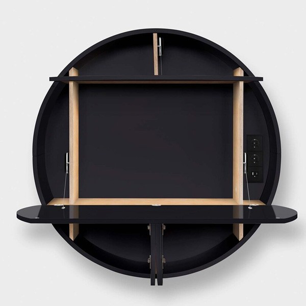 Designer Inesa Malafej presents us with an ingenious and innovative workspace with this wall-mounted secretary. This wall-mounted piece of furniture is perfect for those looking to optimize space in their interior. Its simple and refined design allows it to blend discreetly into any room.
