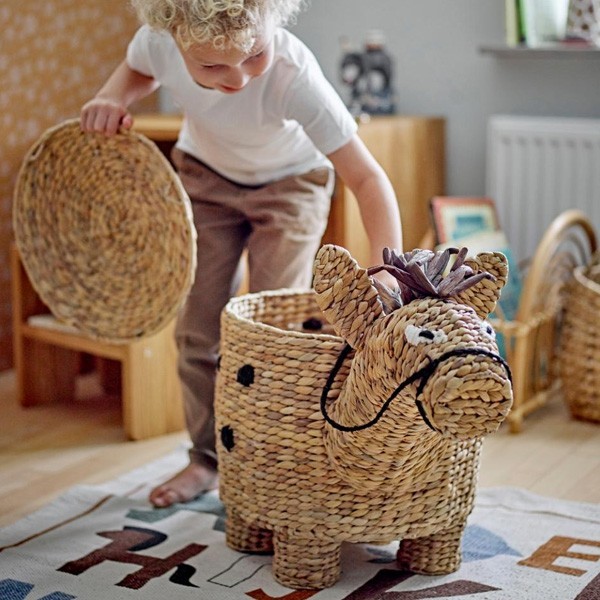 Dive into the enchanting world of the Bobbi basket with lid from Bloomingville MINI , a real invitation to playful storage! Lovingly crafted from natural water hyacinth, this horse-shaped basket brings a touch of magic to every corner of the house. Easy for little hands to handle, its lid opens like a secret door to a world of games and adventures. Give your children an adorable companion to store their precious treasures while cultivating organization and the joy of learning. With Bobbi by your side, order becomes a fun game where dreams and reality come together harmoniously.
