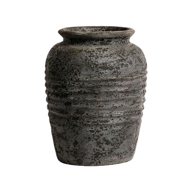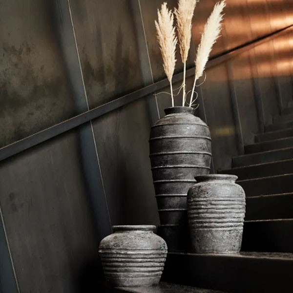 The jars Melancholia from the collection Muubs are hand drawn and crafted in terracotta. Then the raw pot gets a base of black color, which is sanded. Then, a thin layer of gray color is applied. This is also sanded to obtain the right color and the right shades. Finally, the pot receives a coating layer. Quite a process to obtain an authentic and rustic pot. Use it as a jar of flowers with a plant or use it as a decoration as is.