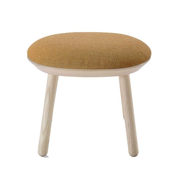 Like the Naïve low chair , the Naïve footrest is available in eight different colors, with a natural and oiled ash wood structure. The upholstery is designed to aesthetically fit the frame, while all the strong connections between the different materials result in a very reliable piece of furniture. Soft , welcoming and easy to assemble, this charming ottoman adapts perfectly to any environment.
