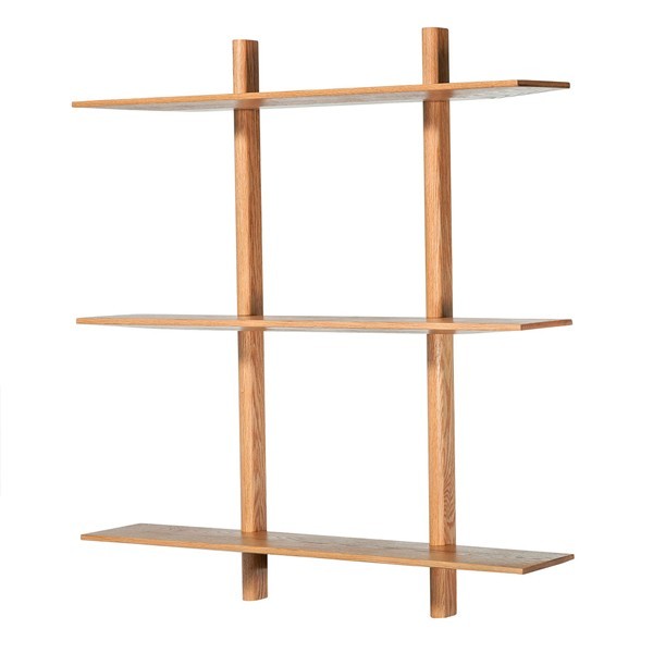 Bring a touch of elegance and functionality to your interior with the Noir shelving system from MUUBS . Crafted from natural light oak, this system consists of three shelves with milled edges, offering a unique expression that celebrates artisan traditions.