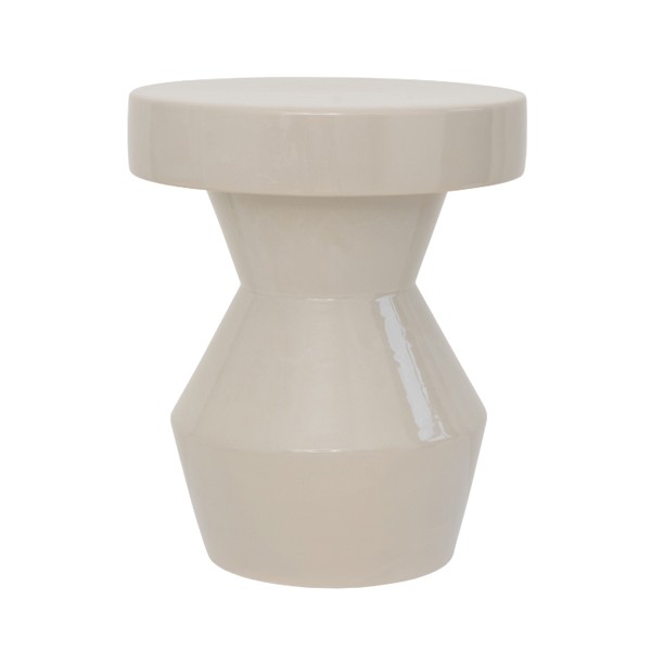 The Sculptural side table from Urban Nature Culture , shaped like a diabolo , is inspired by the hourglass . Not only is it a symbol of time, but it also represents balance . This high-gloss table is handcrafted in Portugal using ceramic. Its vintage look and beautiful hue will captivate you.