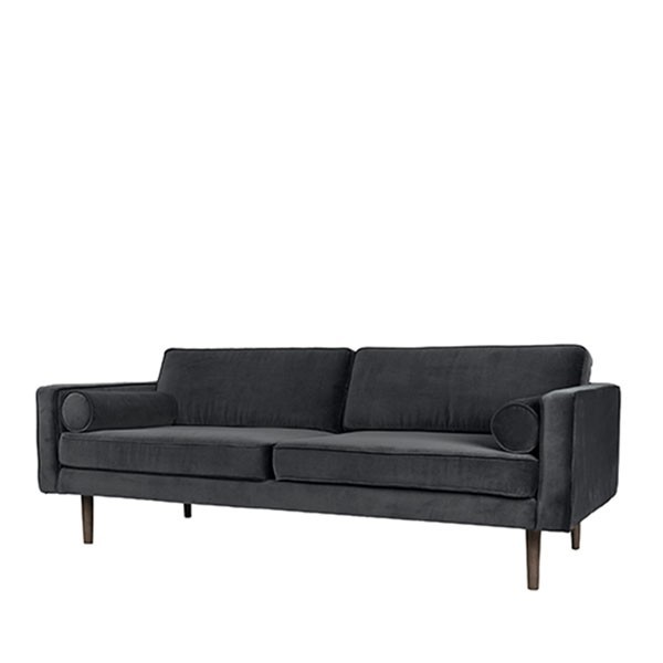 The central decorative element of your living room, the Wind velvet sofa asserts a chic style full of softness with its magnet gray colour. Warm to the sight and to the touch with its 100% polyester fabric in beautiful silky colours . The 3-seater sofa from Broste Copenhagen makes you want to relax. Elegant and resistant, the Wind sofa has everything to please with its high quality water-repellent fabric and whose Martindal solidity test is 45,000! Very comfortable , with its 2 cylindrical cushions to be placed at the level of the armrests and its high density foam padding , it offers a pleasant seat 58 cm deep and 44 cm high. Its solid pine structure and smoked oak legs give the sofa a Scandinavian touch while ensuring its solidity.