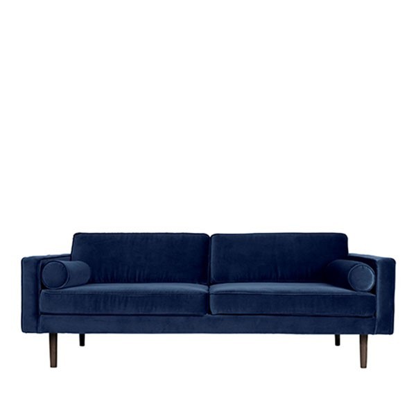 The central decorative element of your living room, the Wind velvet sofa asserts a chic style full of softness . Warm to the sight and to the touch with its 100% polyester fabric in beautiful silky colours . The blue 3-seater sofa from Broste Copenhagen makes you want to relax. Elegant and resistant, the Wind sofa has everything to please with its high quality water-repellent fabric and whose Martindal solidity test is 45,000! Very comfortable , with its 2 cylindrical cushions to be placed at the level of the armrests and its high density foam padding , it offers a pleasant seat 58 cm deep and 44 cm high. Its solid pine structure and smoked oak legs give the sofa a Scandinavian touch while ensuring its solidity.
