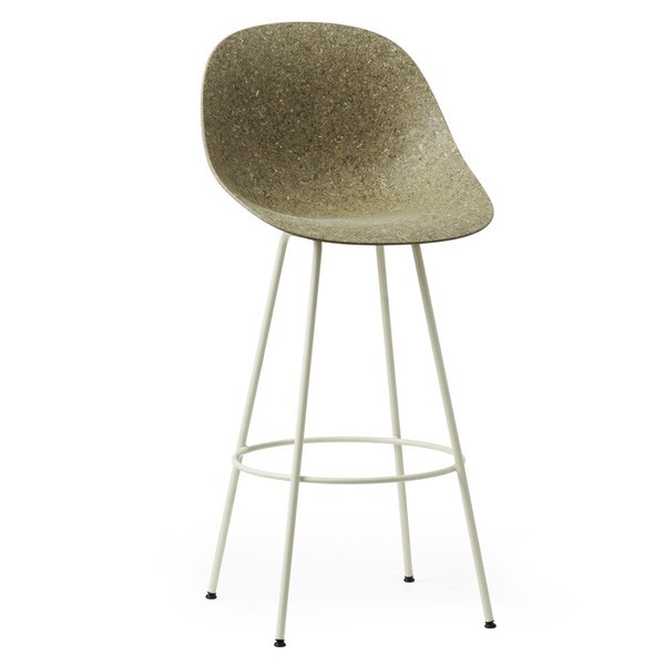 The Mat Chair collection features a hemp shell made using a uniquely developed compression process and mounted on powder-coated steel legs. The shell is made from a unique blend of 75% hemp fibres, while the remaining 25% is a specially developed recyclable bico binder. The Algae variant consists of 69% hemp fibres, 6% eelgrass (seaweed) and 25% binder. If returned to Normann Copenhagen at the end of their life, the shell and base can be recycled.