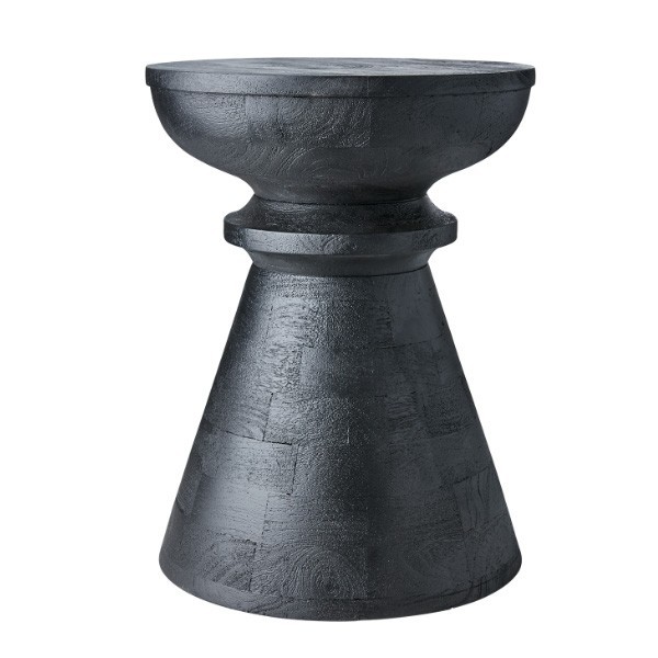 Its deep black absorbs light, creating a striking contrast with its surroundings, while its mango wood whispers stories of craftsmanship and tradition.