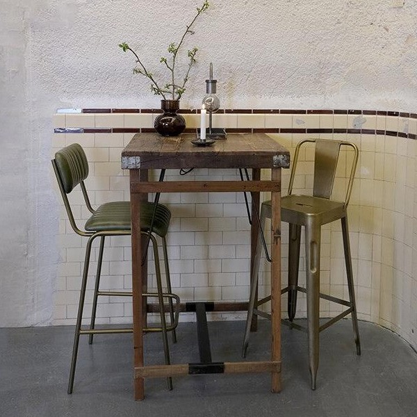 This American diner-style bar stool impresses with its soft lines and exceptional comfort. Its generous seat and enveloping backrest are upholstered in quilted buffalo leather, offering a seat that is both plush and elegant. The tall, slender iron frame with a brass finish adds a touch of refinement while maintaining a light and timeless silhouette. Designed for everyday use, this stool combines sturdiness and style. Delivered in two parts, it comes with a bag of screws for quick and easy assembly of the backrest.