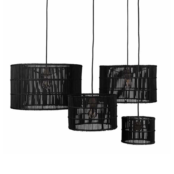 The Black tube lampshade is made of 100% rattan . It convinces with its minimalist and completely organic design . The set of 4 suspensions will adapt to all interior styles. The set is made up of four lampshades of different sizes for a perfect and original decoration . Hang the lampshades, available, separately above a dining table or as a set in the corner of your living room . You will undoubtedly fall in love with these magnificent suspensions.