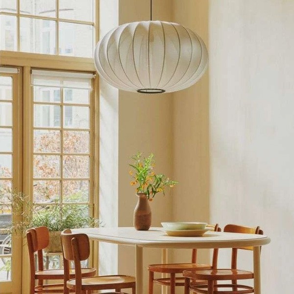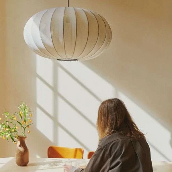 The Knit-Wit 76 Oval Pendant Blue Stone is a fixture that draws inspiration from the classic rice paper lamp, while adopting a modern, Scandinavian aesthetic. It offers the same remarkable qualities as the rice paper lamp, casting a pleasant 360-degree light that bathes the room in a soft, atmospheric glow.