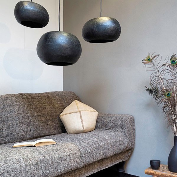 The charcoal -coloured Pebble suspension from Ay illuminate is full of charm. Made from recycled cardboard, it adds character to every room it's placed in. Available in several sizes you can easily play with the volumes.
