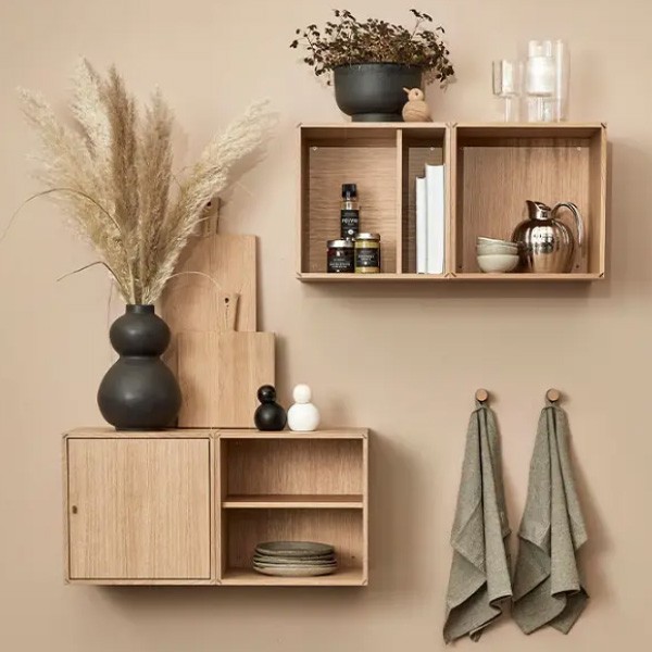 Les modules carrés peuvent être agencés selon vos envies, utilisant deux types de modules et des étagères ajustables, offrant une flexibilité inégalée pour s'adapter à votre décoration. Chaque boîte est livrée avec quatre vis en laiton, garantissant un montage facile et durable.
