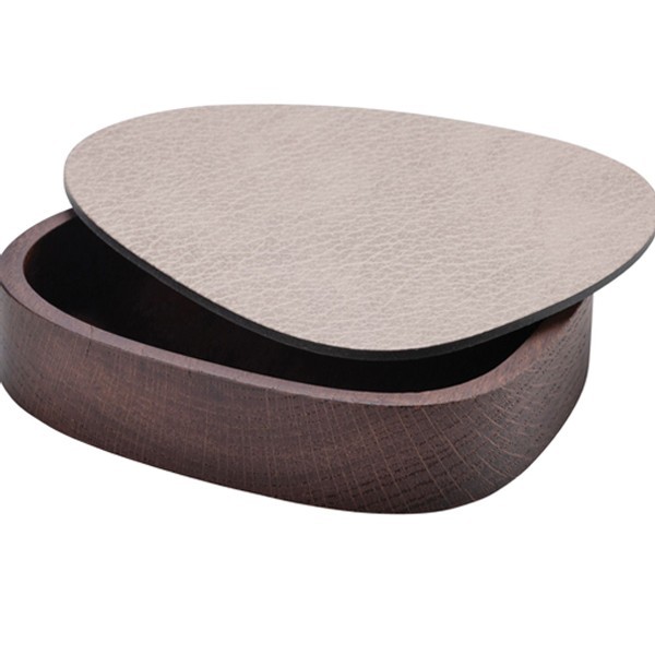 boîte curve chêne couvercle et cuir recyclé - LINDDNA