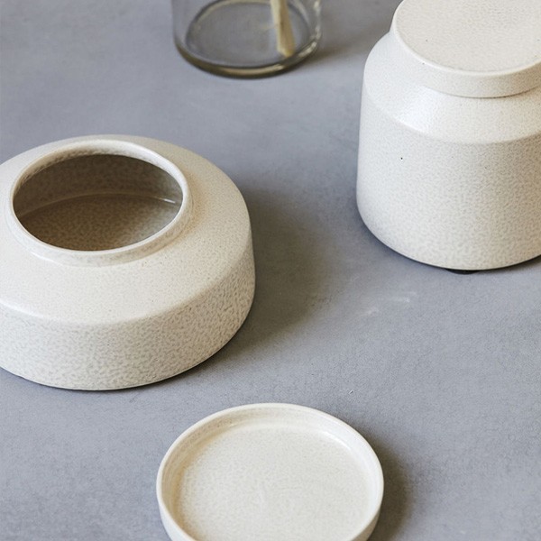 Cette jolie boite de chez House Doctor très élégante avec sa forme ronde et son couvercle plat qui lui confère un aspect à la fois design et épuré sera parfaite pour ranger vos petits objets. Fabriqué en grès, vous apprécierez sa belle couleur grise claire. ainsi que l'effet de l'émail qui lui apporte une touche très élégante.