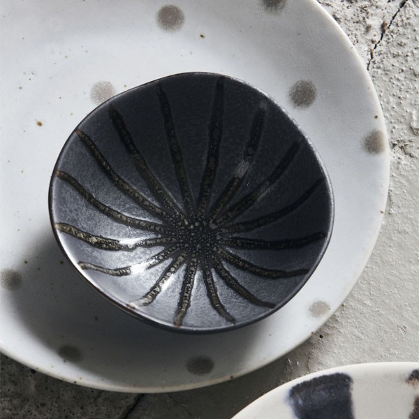 le petit bol pour amuse-gueule décoré de rayures sur un fond sombre et mat. Accueillez vos amis et servez vos snacks préférés dans ces magnifiques bols. Le bol Suns de House Doctor est un excellent complément pour vos présentations lors de vos apéritifs. Avec des bols aux couleurs et motifs plus clairs, ce bol sombre offre un joli contraste. Il peut également être combiné avec des petites assiettes aux motifs et aux couleurs dans le même style pour un ensemble de table rustique et bien pensé.