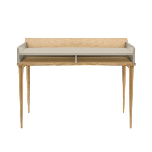 Sa structure en bois est plaquée et ses pieds évasés sont en massif, tous deux composés de chêne européen issu de forêts éco-gérées. Ce bureau est un atout de votre mobilier durable. Il est solide, compact et pratique. Son design, propre à KULILE est sobre et élégant. Il s'intègre dans tous les types de décoration intérieure et le mélange chêne et beige havane est simplement parfait