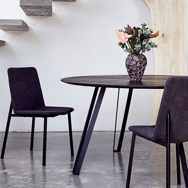 La chaise de salle à manger Chamfer a un profil géométrique très reconnaissable, avec des pieds et un siège inclinés qui, à l'unisson, garantissent à la fois un design de qualité et un confort certain. Le cadre en métal enduit de poudre est recouvert d'une toile écotex lavée à la pierre qui lui apporte un aspect élégant et brut. Conçu en collaboration avec les designers danois SaysWho, la superbe chaise est prête à briller dans les maisons scandinaves.