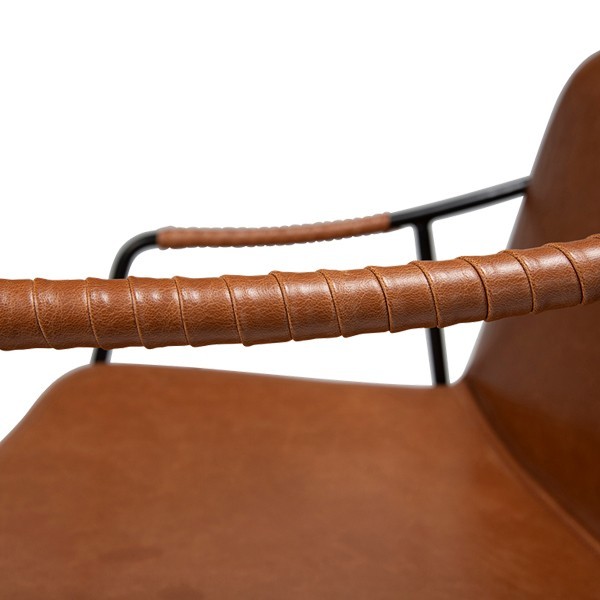 La chaise BOTO designer par Georgsen à des lignes sobres et épurées ce qui la rend très élégante. Les pieds en métal fins se prolongent en accoudoirs et s'enroulent autour du dossier de couleur camel de la chaise. L'assise et le dossier sont confortable et doux. Le cuir artificiel enveloppant les accoudoirs est un détail décoratif qui élève le design au niveau supérieur et ses finitions parfaites vous séduira forcement.