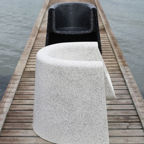 Fabriqués principalement à partir de déchets plastiques industriels et domestiques (compris entre 85% et 95%), les designs Bit sont réalisés à l'aide d'une technique de moulage par rotation. Ce procédé, qui consiste à chauffer les fragments de plastique jusqu'à atteindre un point de fusion de 120°C, permet des cycles de réutilisation et de réchauffage sans altérer les propriétés du matériau, assurant ainsi un cycle de vie durable.