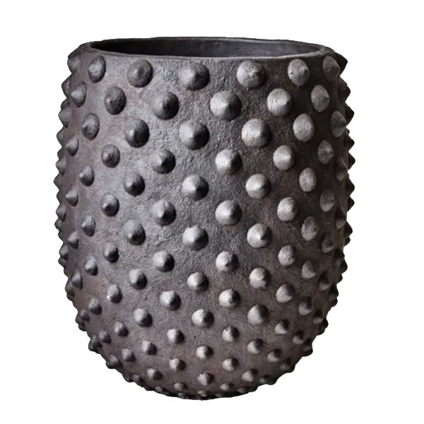 Découvrez le charme moderne et énigmatique du pot CAMILLE en taille L, dans une combinaison saisissante de noir et de marron inspirée du béton brut. Sa forme parfaitement arrondie est rehaussée par des détails subtils : de fines piques qui ajoutent une touche d'originalité à cet élément de décoration.