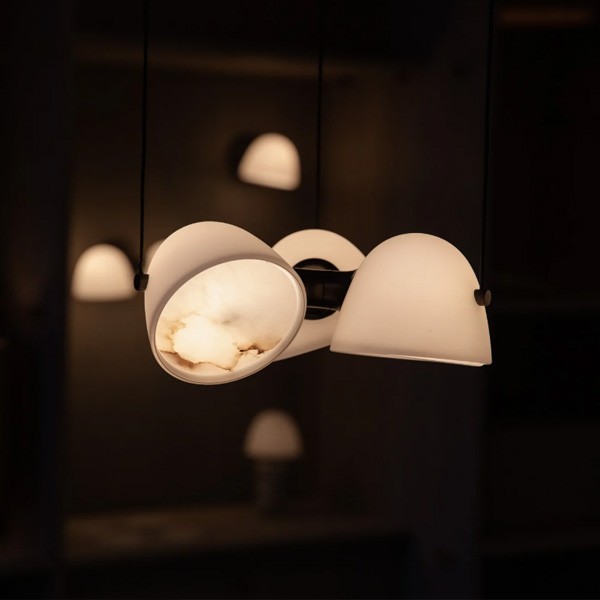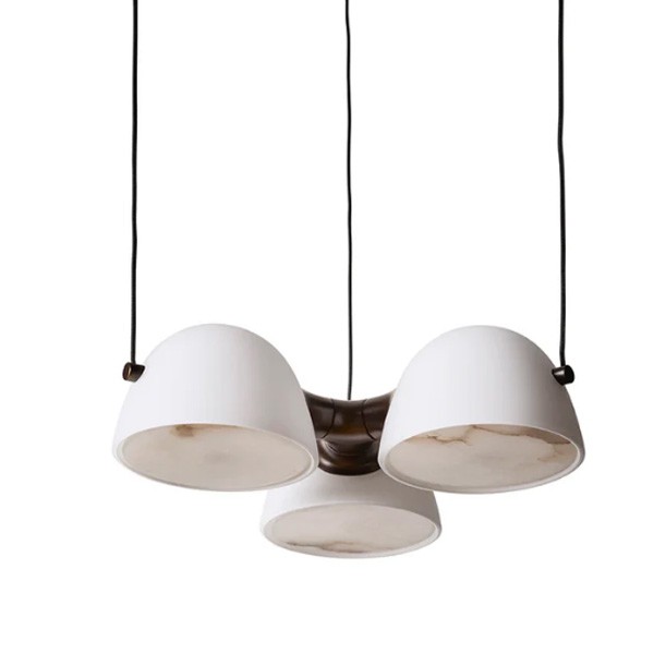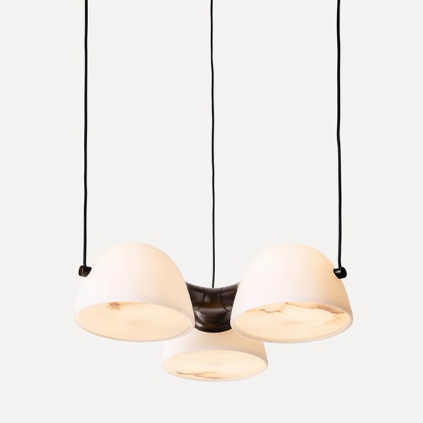 Fidèle à l'ADN de la collection, cette suspension met en scène la rencontre sensuelle entre le laiton massif bruni et la transparence laiteuse du duo verre opale / albâtre. L'élément en laiton semble ici capturer et unifier les trois diffuseurs, créant un point focal riche en textures. Le marbre Calacatta Viola (selon modèle) ajoute une note minérale finale à cet ensemble architectural.