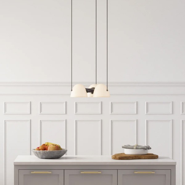 Dans une cuisine haut de gamme, l'alignement de deux ou trois suspensions Triple Fuse au-dessus d'un grand îlot central transforme l'espace technique en une galerie de design, le laiton bruni répondant aux ferrures de vos meubles. Elle est également spectaculaire suspendue au centre d'un hall d'entrée ou d'un dressing, apportant une touche de raffinement immédiat et une luminosité enveloppante qui sublime les volumes de la pièce.