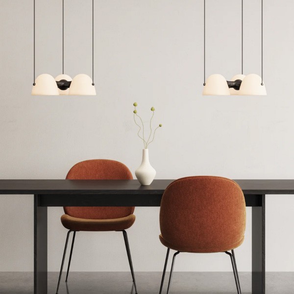La suspension Triple Fuse est conçue pour captiver le regard. Elle trouve naturellement sa place au-dessus d'une table à manger ronde ou carrée, où sa lumière rayonnante crée un cercle d'intimité propice aux dîners conviviaux.