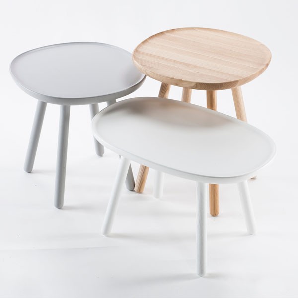 Les tables d’appoint EMKO « Naïve » sont disponibles en trois tailles et formes différentes. Elles peuvent former un ensemble ou être installées individuellement. Le plateau légèrement incurvé est taillé à partir d’une seule pièce en frêne massif et les pieds de table s’y vissent aisément. Les angles arrondis donnent à ces tables une apparence douce et chaleureuse. Elles seront bien adaptées à tout type de pièce.