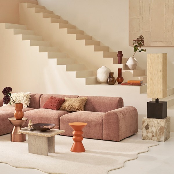 Imaginez un salon moderne, illuminé par une lumière douce et chaleureuse. Dans un coin stratégique, à côté du canapé en velours gris, se trouve la table d'appoint Luova d'Urban Nature Culture. Sa silhouette élégante et ses détails raffinés se fondent harmonieusement avec le décor, apportant une touche de sophistication discrète à l'espace.