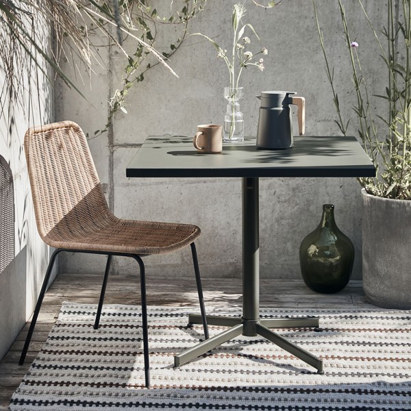 Aménagez un coin salon accueillant avec cette petite table carré de House Doctor. Elle offre un espace de détente idéal, que ce soit sur votre balcon ou dans un coin de votre salon. La table en fer, revêtue d'un fini en poudre vert mat, apporte une touche contemporaine et s'adapte à tous les décors. Pour optimiser l'espace sur un petit balcon ou une terrasse, il suffit de relever le plateau de la table en position verticale lorsqu'il n'est pas utilisé. Complétez l'ensemble avec vos chaises préférées et agrémentez la table de bougeoirs pour une touche personnelle. Afin d'assurer sa longévité, évitez de laisser la table Helo exposée aux intempéries et préférez la ranger à l'intérieur lorsqu'elle n'est pas utilisée.
